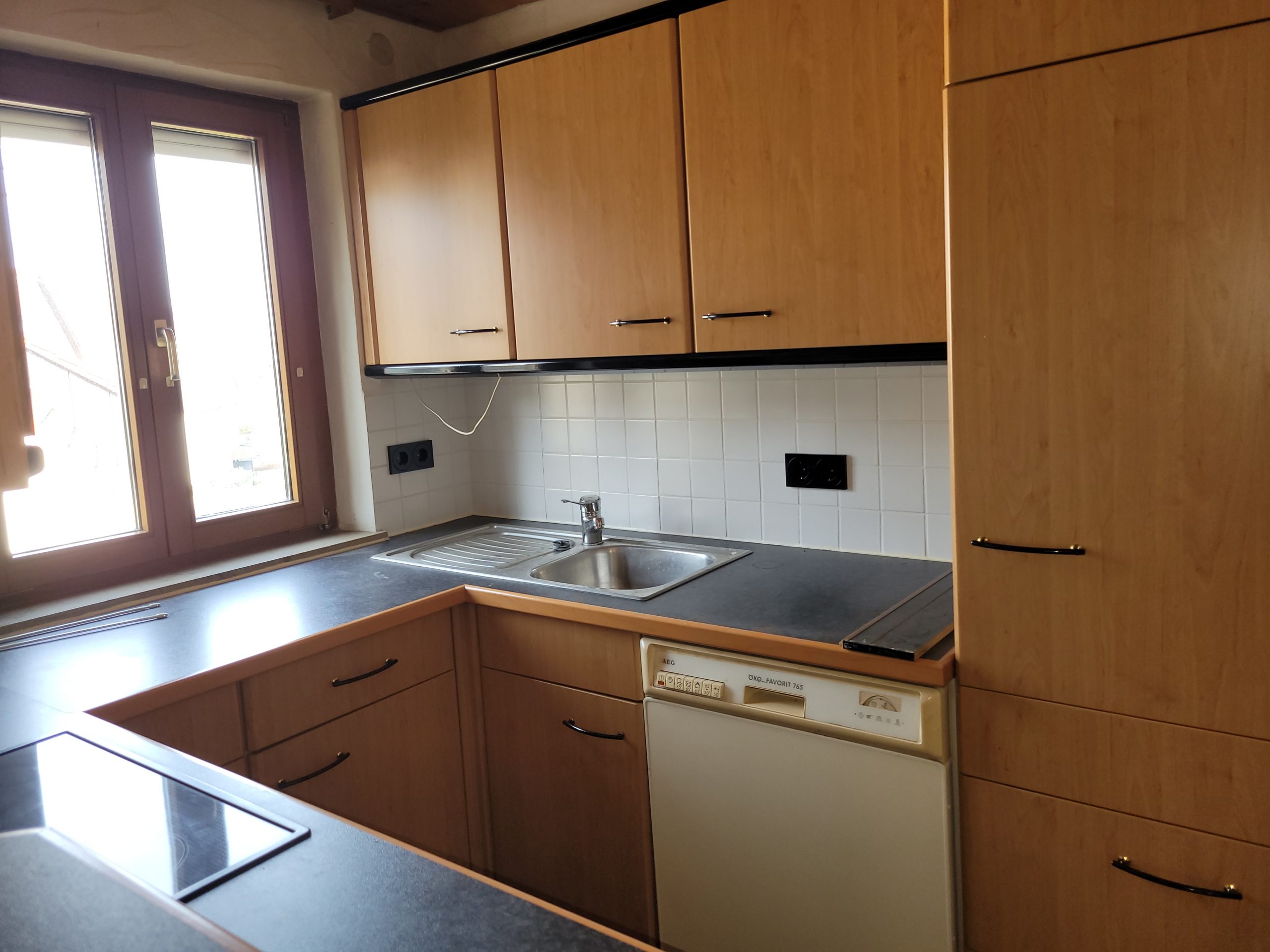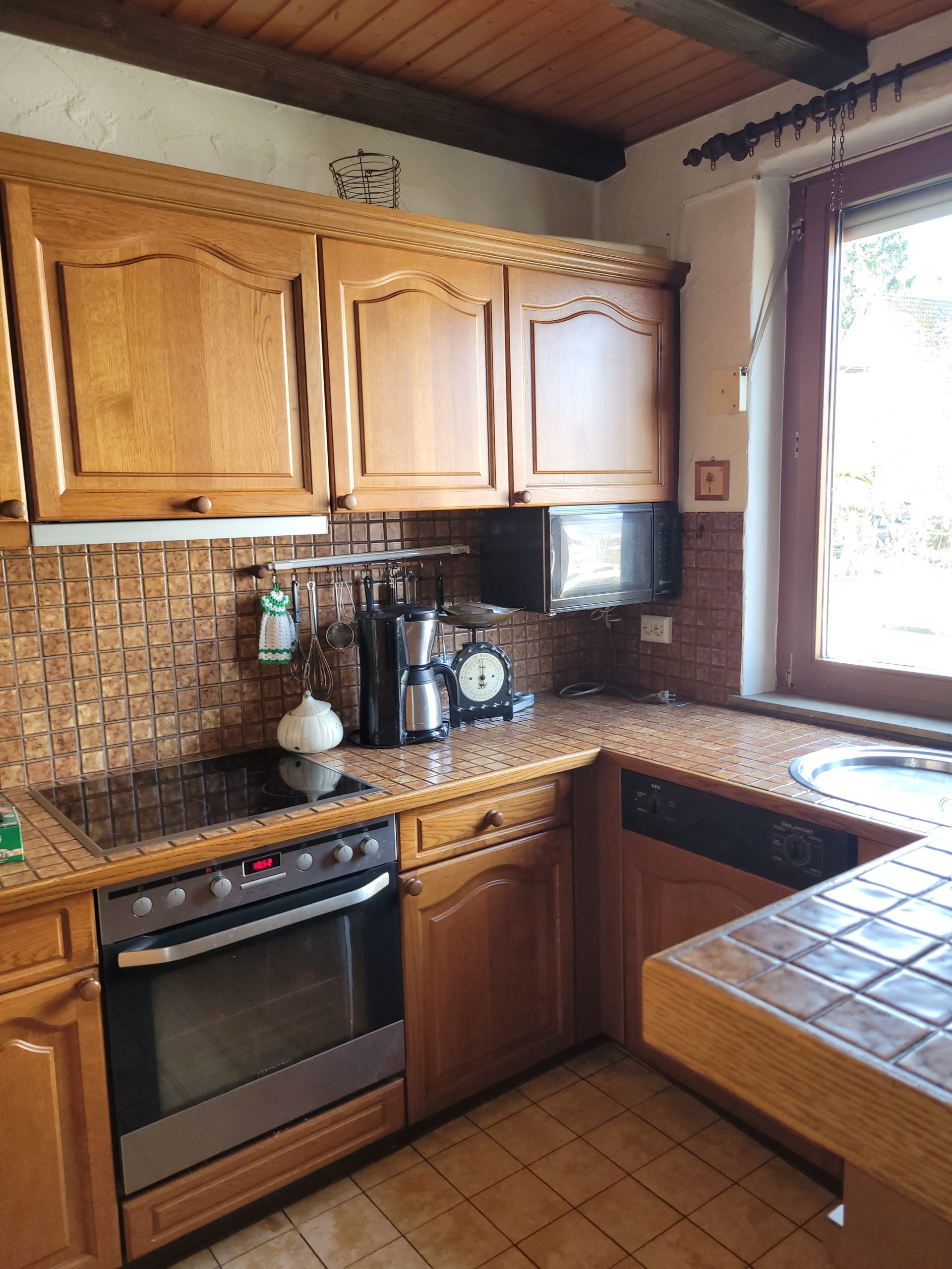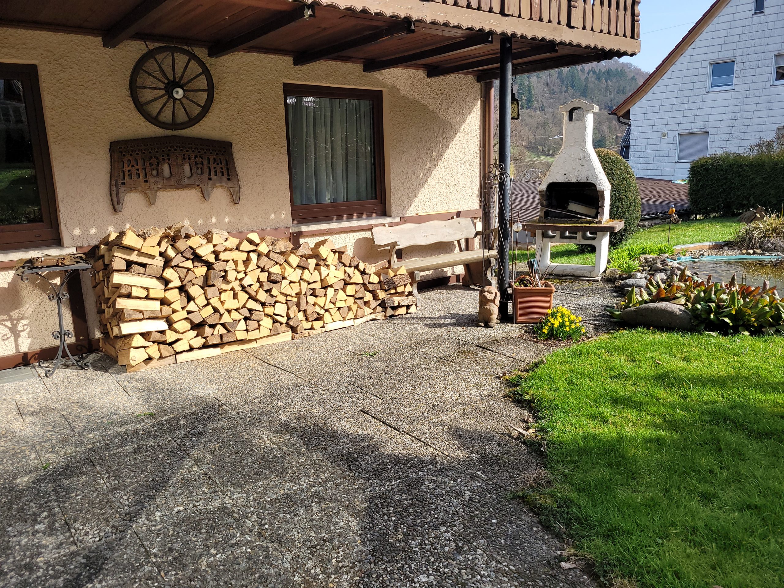 Isolierglasfenster aus Holz, Kaminofen, Einkauküchen, Terrasse und Gartenhütte, Garage und Carport.